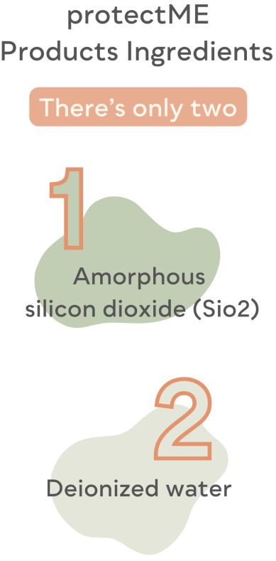 Silicone dioxide (SiO2) is a natural substance that is already in use in many products around us, like glass, concrete, cosmetics, food and even the water we drink. protectME does not create silica dust, the silicone dioxide in protectME is amorphous, which means it does not crystallise. For this reason, it is not a health concern.