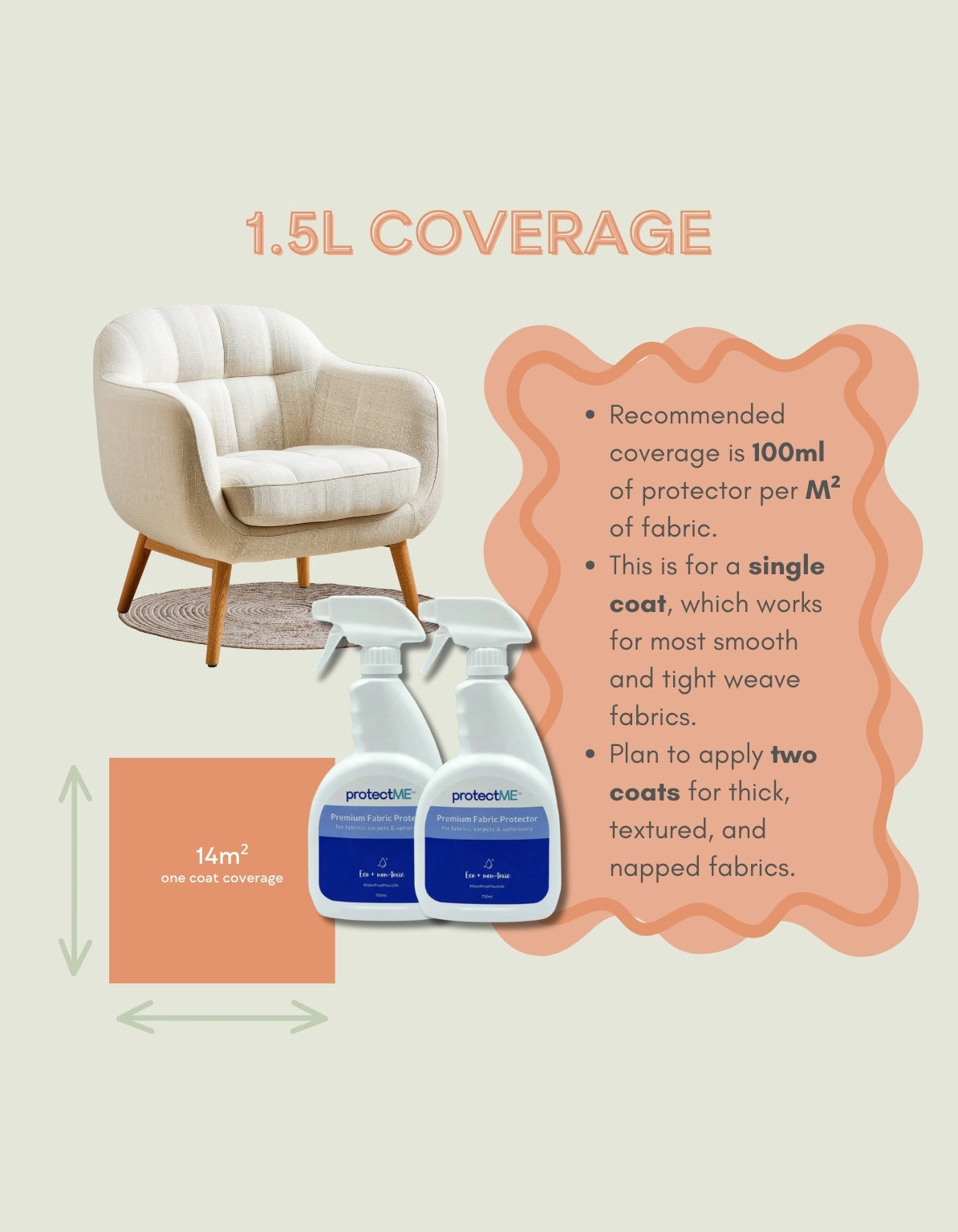 - Our 750ml spray bottles will protect about 7m2 each (14m2 total).